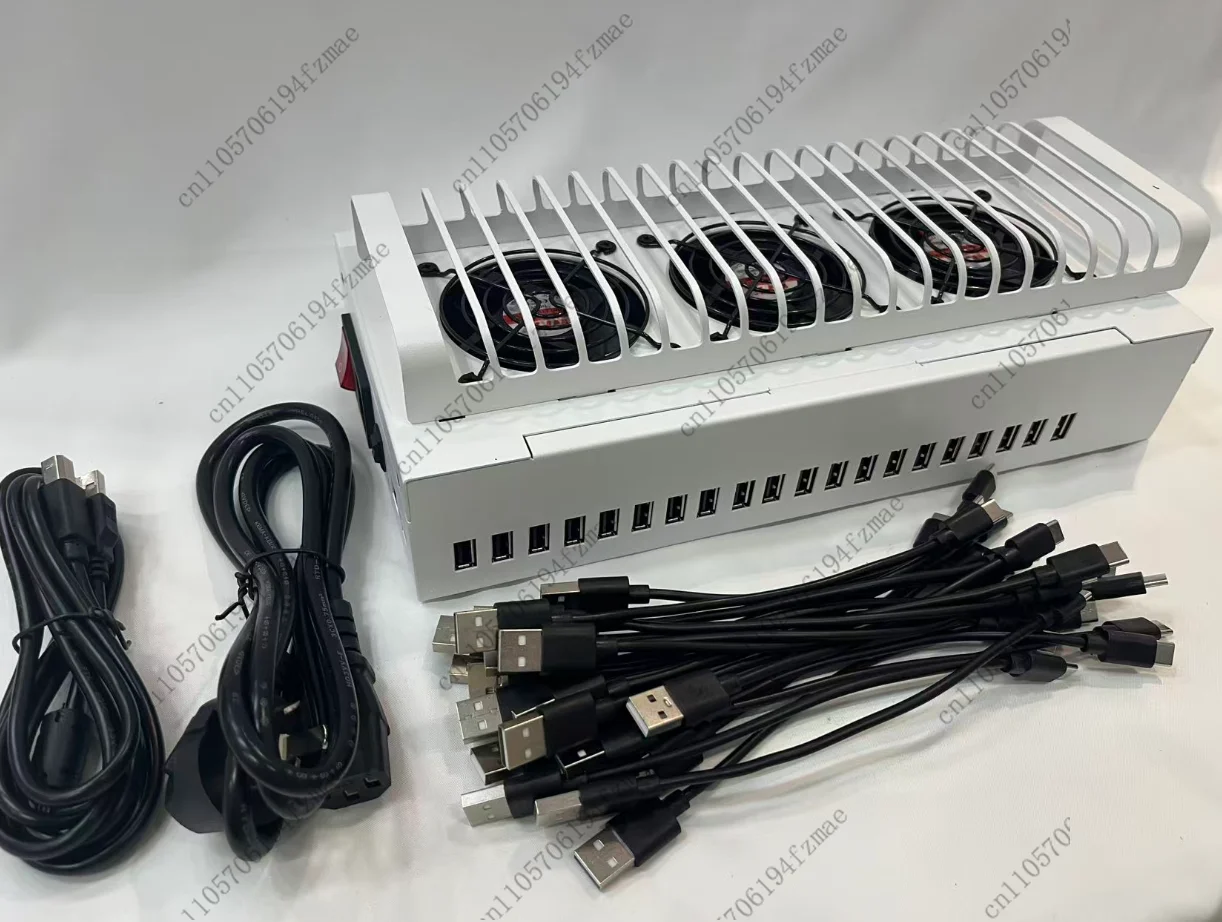 Descrição do produto (detalhes + cobertura multiângulo) 1.Especificações disponíveis para atender diversas necessidades? Modelo de 20 portas: adequado para estúdios de pequeno e médio porte/carregamento de vários dispositivos pessoais, mantém a área de trabalho livre de bagunça? Modelo de 40 slots: adequado para estúdios de telefonia móvel, vários dispositivos de transmissão ao vivo, carregamento centralizado de configuração de travamento, etc., manuseie dispositivos em massa de uma só vez 2.Novo e autêntico 3.Com ventilador de resfriamento, o carregamento não superaquece.O ventilador de resfriamento integrado pode dissipar rapidamente o calor ao carregar vários dispositivos simultaneamente, evitando o superaquecimento dos dispositivos/hub e prolongando a vida útil 4.Acessórios completos, prontos para uso após o recebimento O pacote inclui: Unidade principal do hub + ventilador correspondente + cabo de alimentação + cabo de dados + cabo de conexão do computador, não há necessidade de comprar acessórios adicionais, pode ser conectado à alimentação após a desmontagem